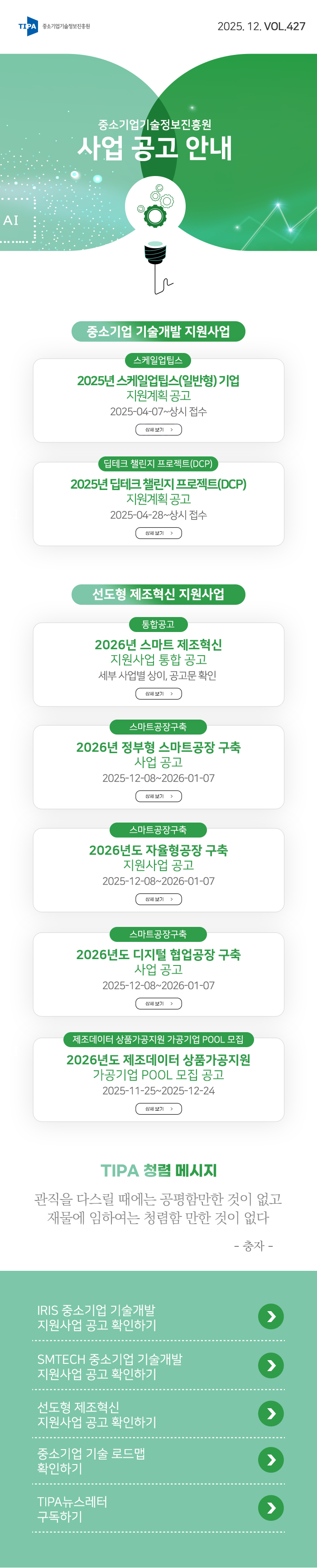 [TIPA뉴스레터] 중소기업의 R&D 파트너, TIPA (TIPA 뉴스레터 제427호)