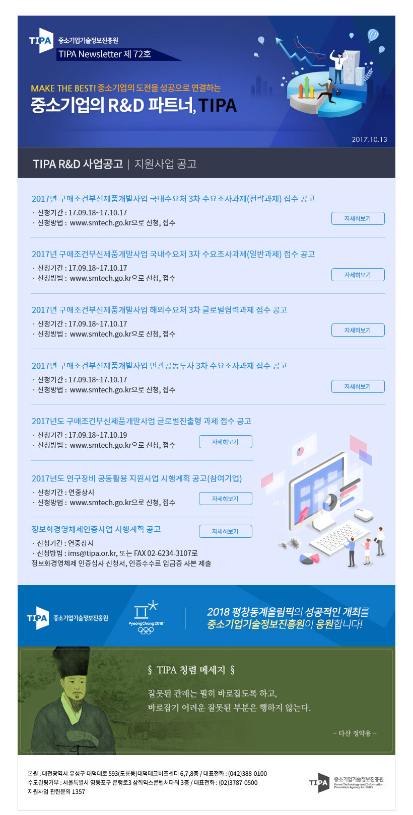[TIPA뉴스레터] 중소기업의 R&D 파트너, TIPA(TIPA 뉴스레터 제72호)
