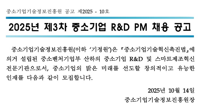 리스트 상세| 2025년 제3차 중소기업 R&D PM 채용 공고 | |||||