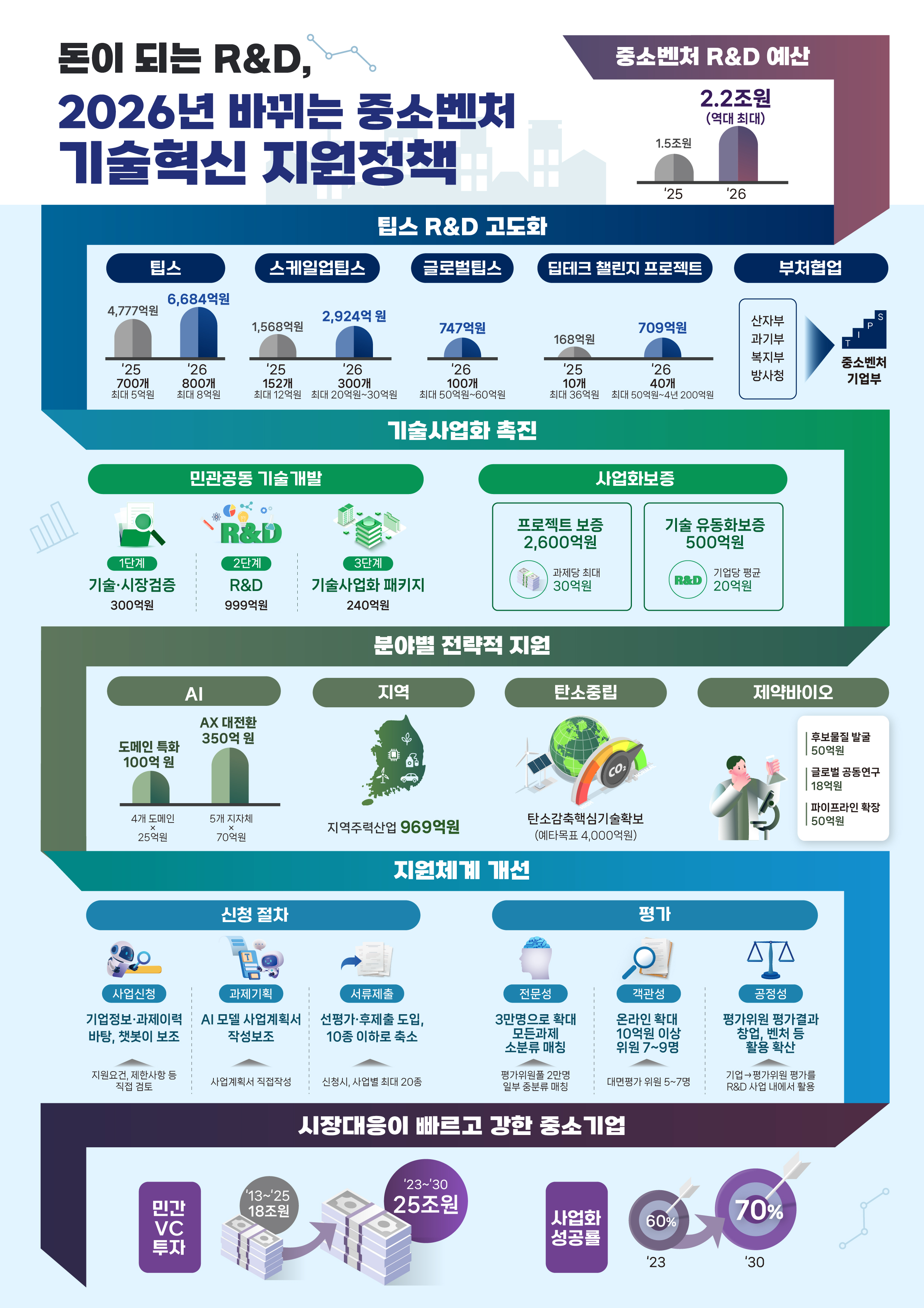 리스트 상세[공지사항] 2026년 바뀌는 중소벤처 기술혁신 지원정책 안내 | |||||