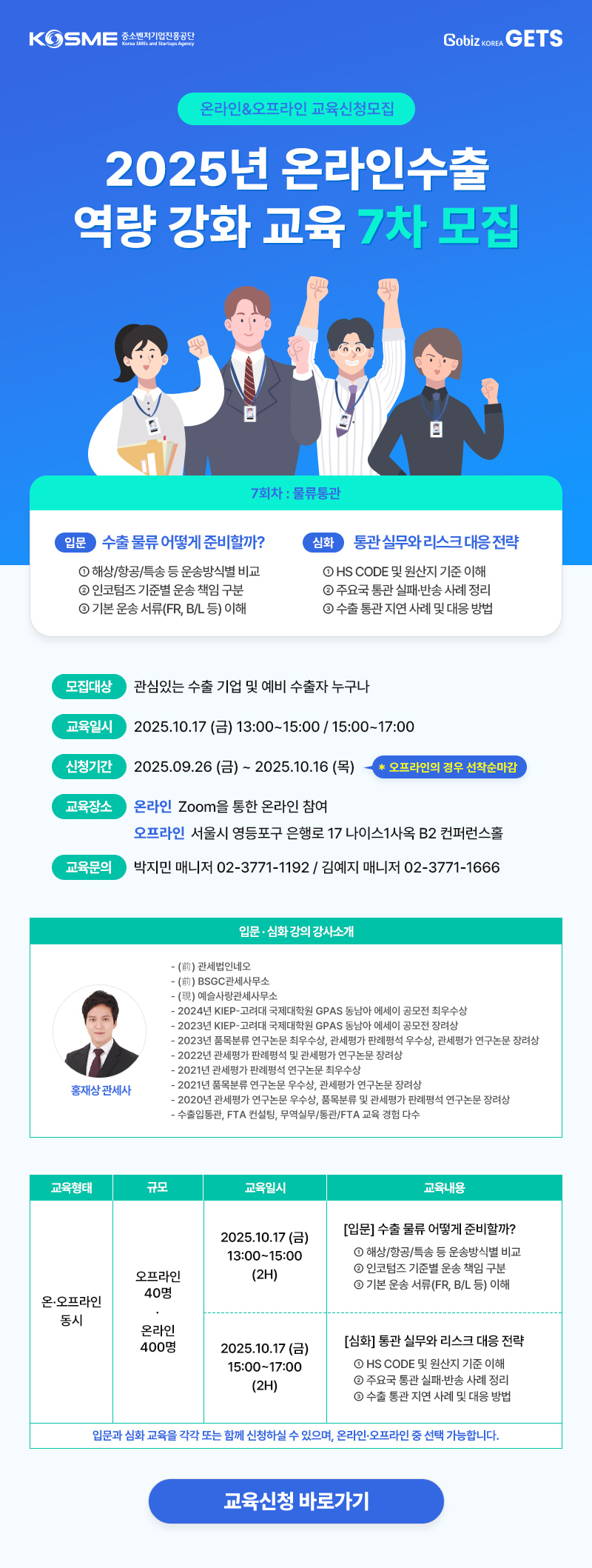 [유관기관 소식] [중소벤처기업진흥공단] 2025년 온라인수출 역량 강화 교육 (7차) 안내