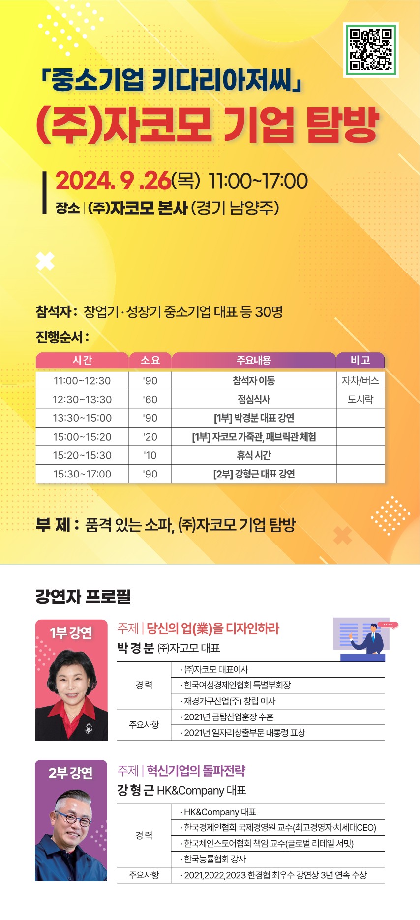 [유관기관 소식] [중소기업중앙회] 중소기업 키다리 아저씨 (주)자코모 기업 탐방
