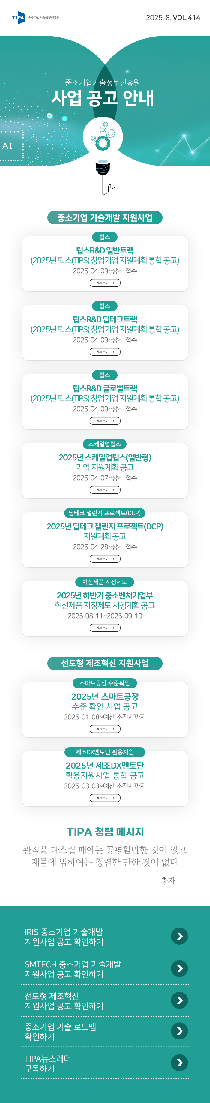 [TIPA뉴스레터] 중소기업의 R&D 파트너, TIPA (TIPA 뉴스레터 제414호)