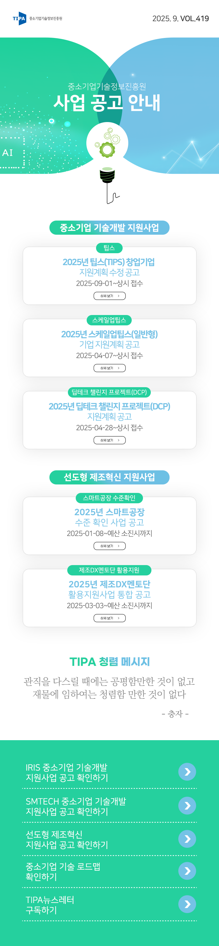 [TIPA뉴스레터] 중소기업의 R&D 파트너, TIPA (TIPA 뉴스레터 제419호)