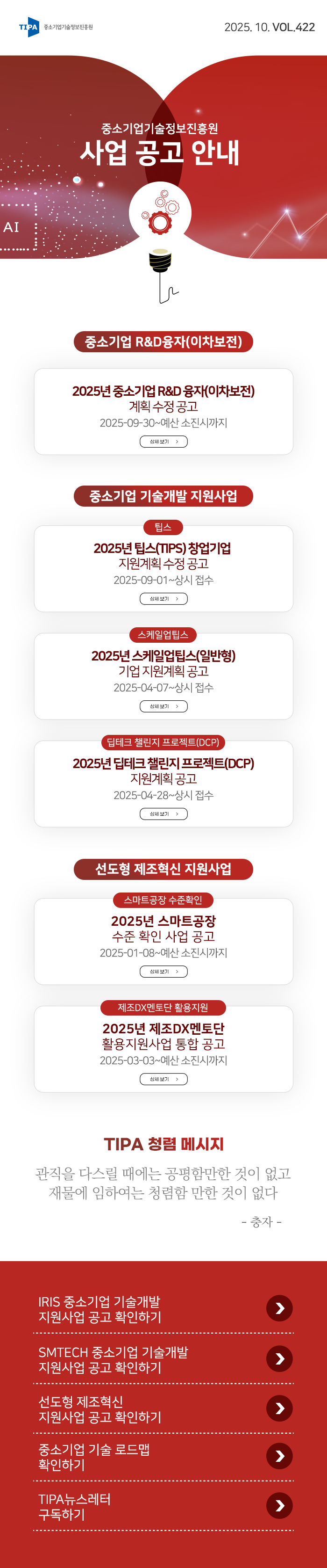 [TIPA뉴스레터] 중소기업의 R&D 파트너, TIPA (TIPA 뉴스레터 제422호)