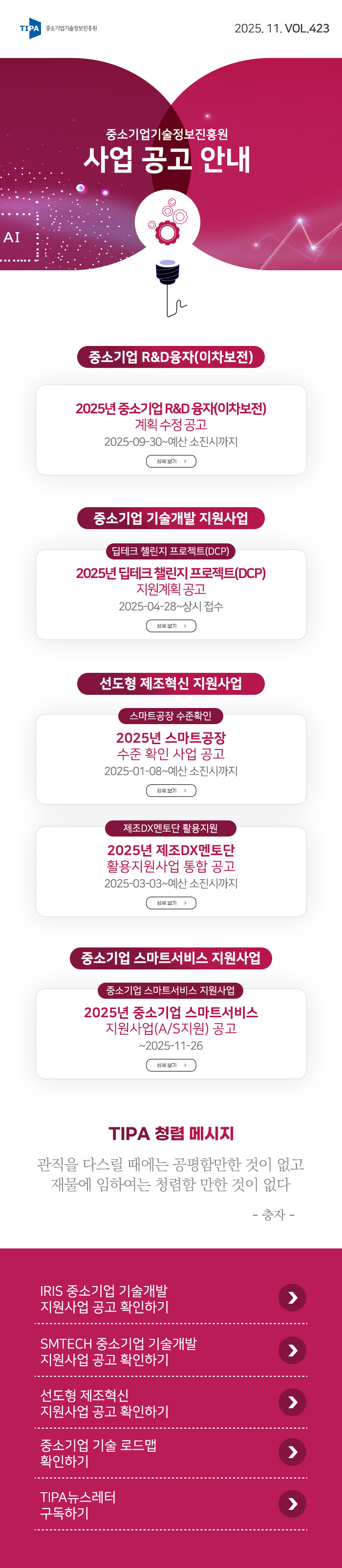 [TIPA뉴스레터] 중소기업의 R&D 파트너, TIPA (TIPA 뉴스레터 제423호)