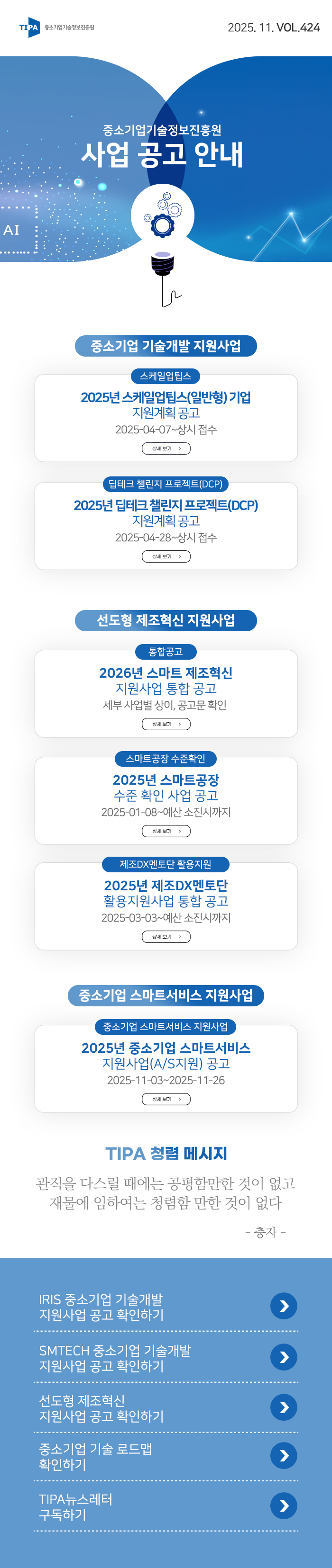[TIPA뉴스레터] 중소기업의 R&D 파트너, TIPA (TIPA 뉴스레터 제424호)