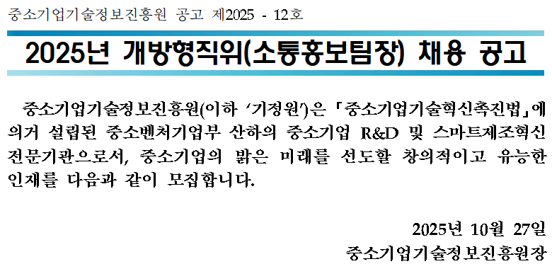 리스트 상세| 2025년 개방형직위(소통홍보팀장) 채용 공고 | |||||